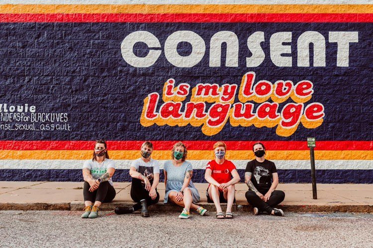 “Consent is My Love Language” Mural painting in the Grove Neighborhood, St. Louis, Mo 2020